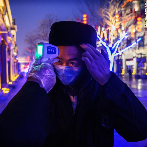 Photos: The novel coronavirus outbreak A worker has his temperature checked on a shuttered commercial street in Beijing on February 12.Hide Caption 273 of 337