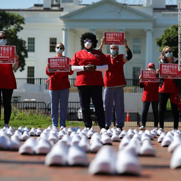 Photos: The novel coronavirus outbreak During a protest in Washington on May 7, members of National Nurses United stand among empty shoes that they say represent nurses who have died from Covid-19.Hide Caption 73 of 337