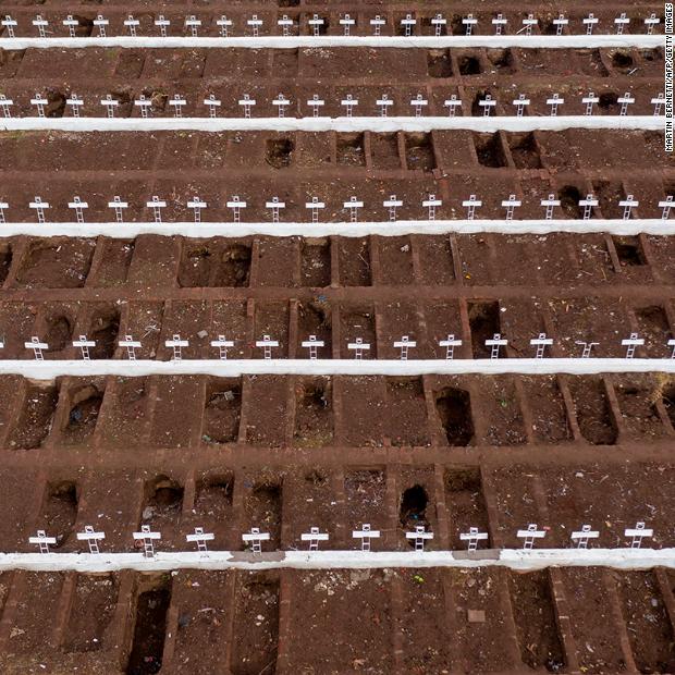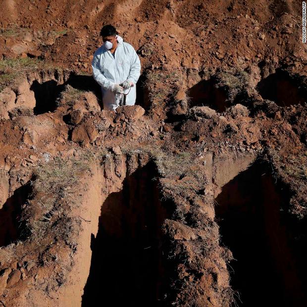 Photos: The novel coronavirus outbreak This aerial photo shows gravediggers working at the Vila Formosa Cemetery, on the outskirts of Sao Paulo, Brazil, on May 22. The coronavirus is surging in Brazil, the hardest-hit country in Latin America.Hide Caption 52 of 337
