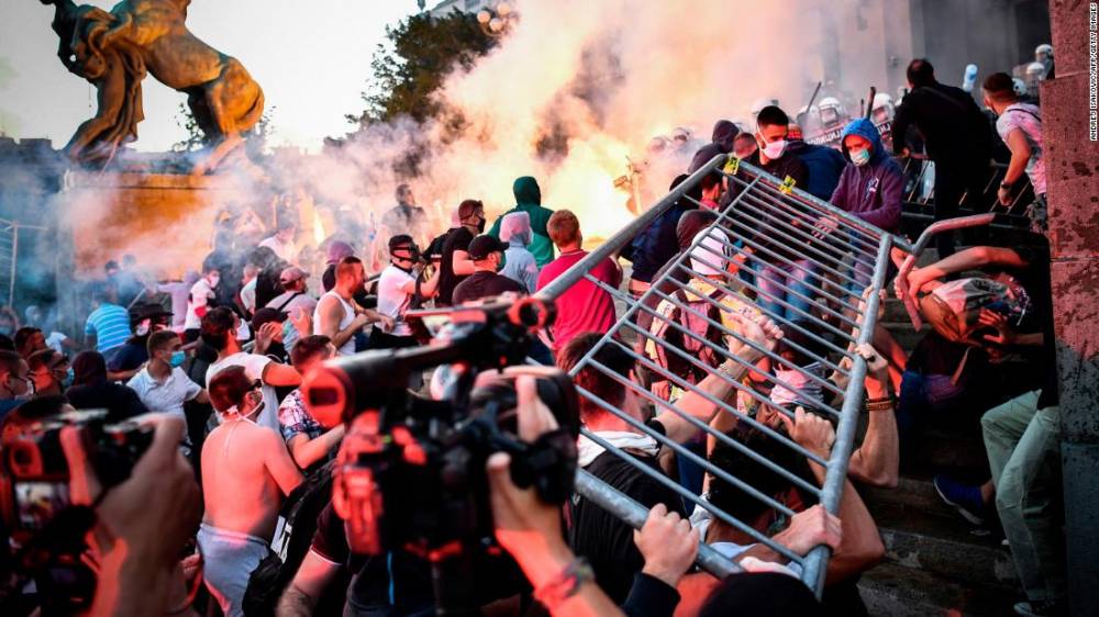 Photos: The novel coronavirus outbreak Protesters clash with police in front of Serbia’s National Assembly building in Belgrade on July 8. People were demonstrating against President Aleksandar Vucic after he announced a weekend-long curfew to try to combat a surge in coronavirus cases.Hide Caption 14 of 337