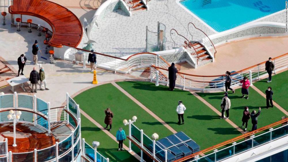 Photos: The novel coronavirus outbreak Passengers are seen on the deck of the Diamond Princess cruise ship, docked at the Yokohama Port on February 7.Hide Caption 290 of 337
