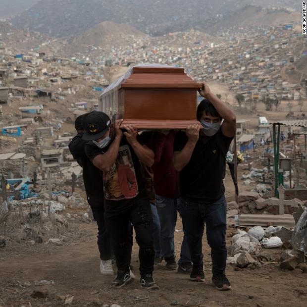 Photos: The novel coronavirus outbreak People carry the coffin of a suspected coronavirus victim at the Nueva Esperanza cemetery, on the outskirts of Lima, Peru, on May 28. Peru has the second-highest number of coronavirus cases in South America, behind Brazil.Hide Caption 43 of 337