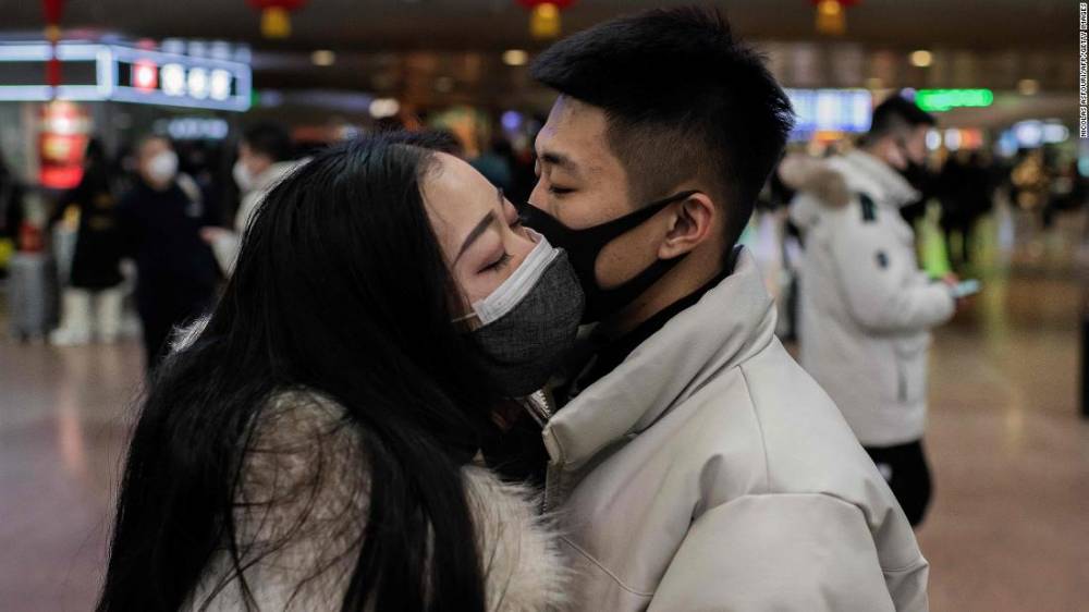 Photos: The novel coronavirus outbreak A couple kisses goodbye as they travel for the Lunar New Year holiday in Beijing on January 24.Hide Caption 324 of 337