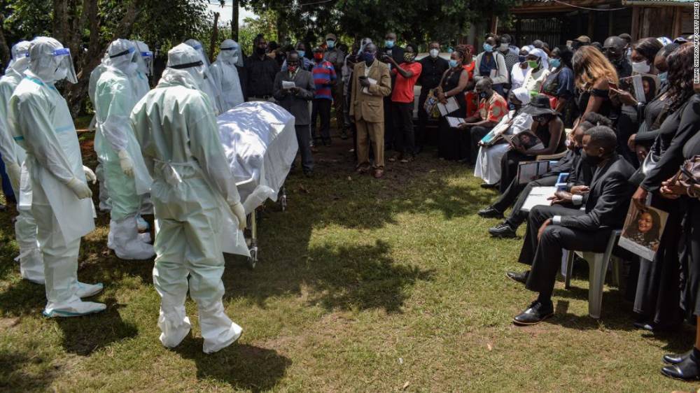 Photos: The novel coronavirus outbreak Members of the Bungoma County Isolation Team stand by the coffin of Dr. Doreen Lugaliki during her funeral in Ndalu, Kenya, on July 13. Lugaliki, 39, died from complications related to the novel coronavirus.Hide Caption 8 of 337