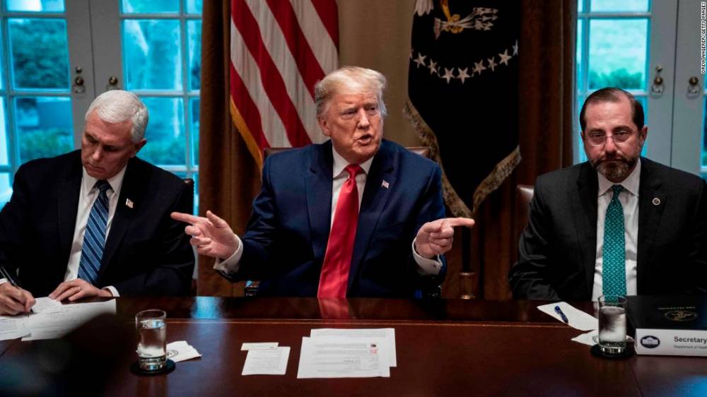 Photos: The novel coronavirus outbreak US President Donald Trump, flanked by Vice President Mike Pence, left, and Health and Human Services Secretary Alex Azar, speaks during a meeting with pharmaceutical executives and the White House coronavirus task force on March 2. Throughout the meeting, Trump was hyperfocused on pressing industry leaders in the room for a timeline for a coronavirus vaccine and treatment. But experts at the table — from the administration and the pharmaceutical industry — repeatedly emphasized that a vaccine can’t be rushed to market before it’s been declared safe for the public.Hide Caption 250 of 337