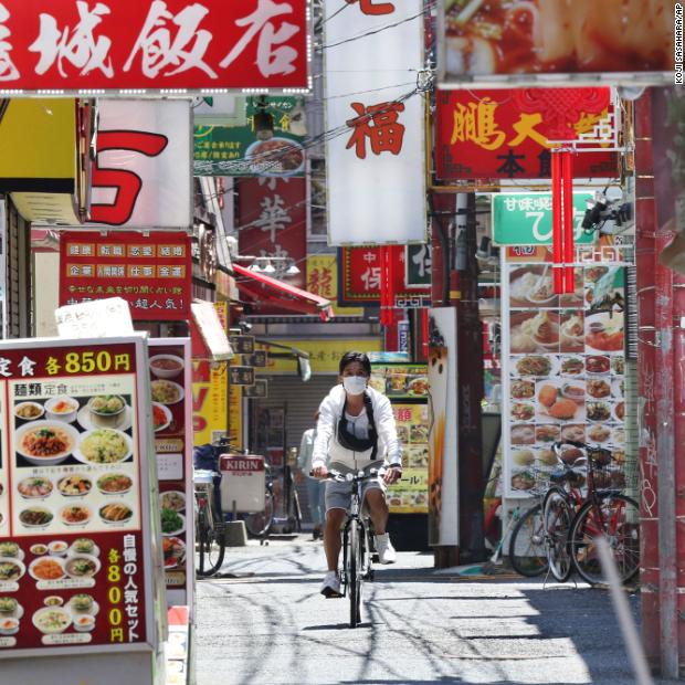 Photos: The novel coronavirus outbreak A man wearing a face mask cycles through Chinatown in Yokohama, Japan, on May 8. Prime Minister Shinzo Abe announced that Japan will extend its state of emergency until the end of May.Hide Caption 71 of 337