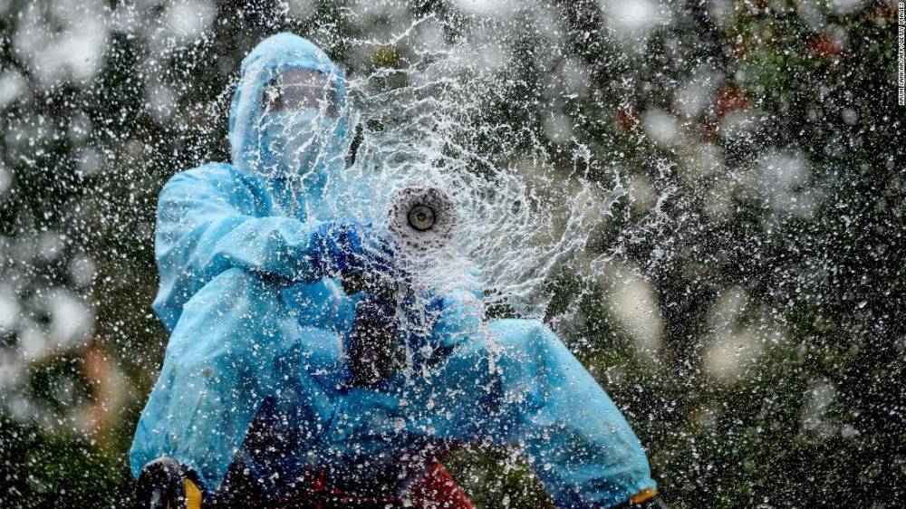 Photos: The novel coronavirus outbreak A colleague sprays disinfectant on a doctor in Wuhan on February 3.Hide Caption 305 of 337