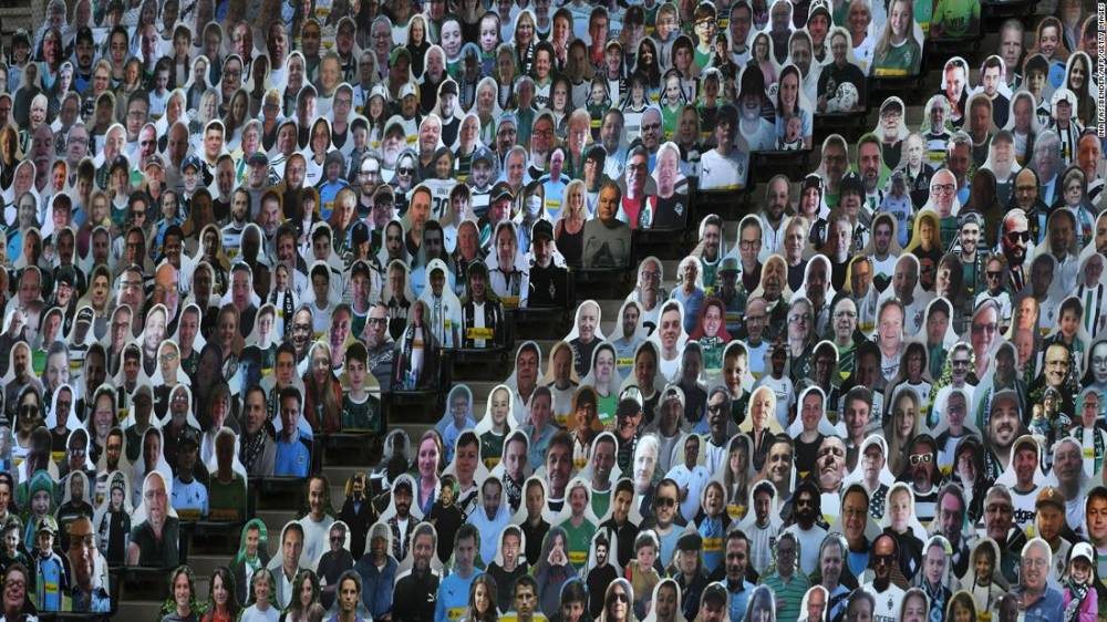 Photos: The novel coronavirus outbreak Cardboard cutouts of soccer fans are seen at the Borussia-Park stadium in Mönchengladbach, Germany, on May 19. The Bundesliga, Germany’s top pro soccer league, became the first major European competition to return amid the coronavirus pandemic.Hide Caption 56 of 337