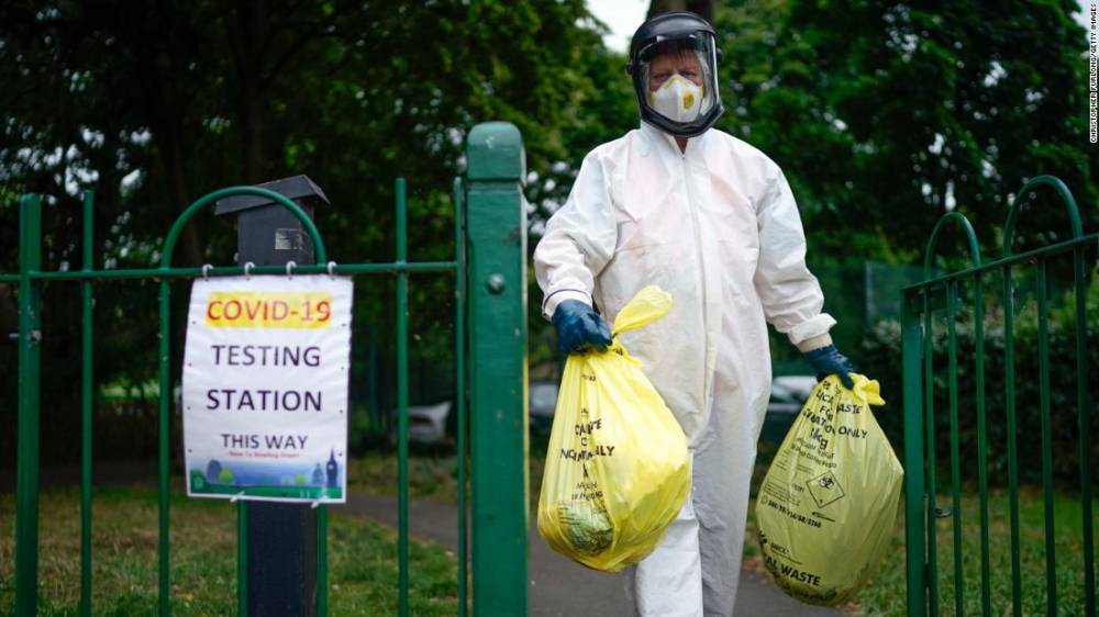 Photos: The novel coronavirus outbreak A city council worker carries trash from a coronavirus testing center in Leicester, England, on June 29. Schools and stores in the city of Leicester were closing again, with some restrictions being reimposed because of its high infection rate.Hide Caption 20 of 337