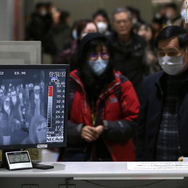 Photos: The novel coronavirus outbreak Passengers are checked by a thermography device at an airport in Osaka, Japan, on January 23.Hide Caption 327 of 337