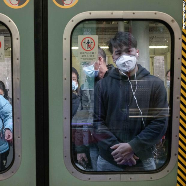 Photos: The novel coronavirus outbreak Passengers in Hong Kong wear protective masks as they wait to board a train at Lo Wu Station, near the mainland border, on January 30. Hide Caption 309 of 337