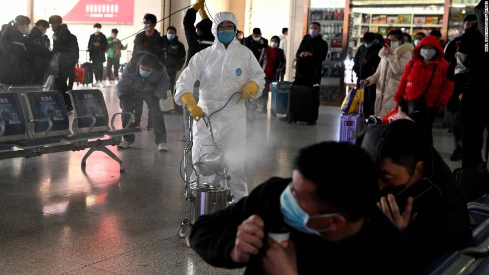 Photos: The novel coronavirus outbreak Passengers react as a worker wearing a protective suit disinfects the departure area of a railway station in Hefei, China, on March 4.Hide Caption 244 of 337