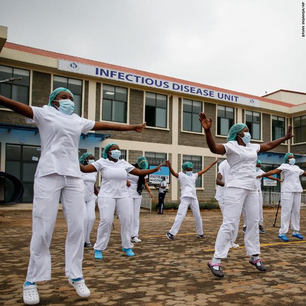 Photos: The novel coronavirus outbreak Nurses in Nairobi, Kenya, take part in a Zumba fitness class in the parking lot of the Kenyatta University Teaching, Referral and Research Hospital on May 17.Hide Caption 59 of 337