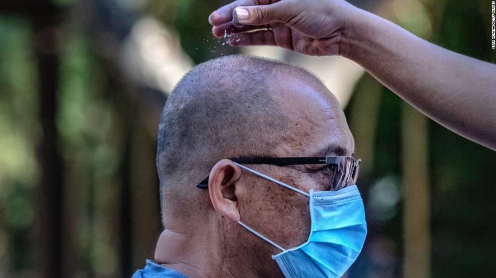 Photos: The novel coronavirus outbreak A Catholic devotee wears a face mask as he is sprinkled with ash during Ash Wednesday services in Paranaque, Philippines, on February 26.Hide Caption 260 of 337
