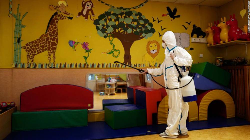 Photos: The novel coronavirus outbreak A nursery is disinfected in Cannes, France, on May 6. Nurseries in France were to gradually reopen on May 11.Hide Caption 76 of 337
