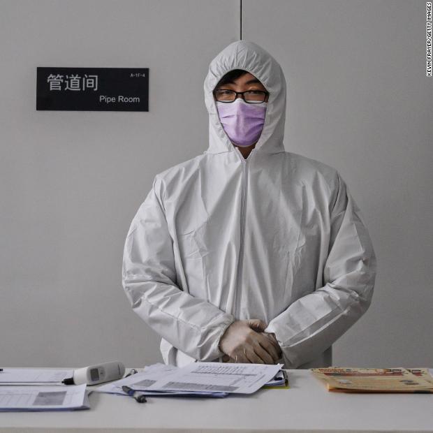 Photos: The novel coronavirus outbreak A worker wears a protective suit as he waits to screen people entering an office building in Beijing on February 10. China’s workforce is slowly coming back to work after the coronavirus outbreak forced many parts of the country to extend the Lunar New Year holiday by more than a week.Hide Caption 279 of 337