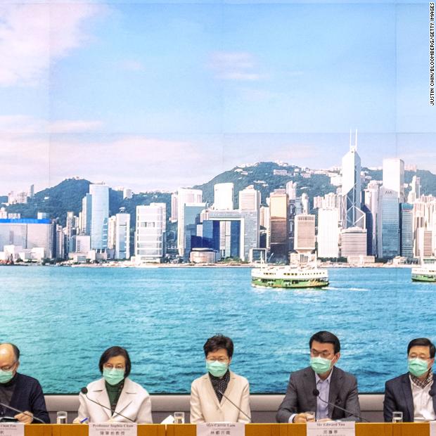 Photos: The novel coronavirus outbreak Hong Kong Chief Executive Carrie Lam, center, attends a news conference in Hong Kong on January 28. Lam said China will stop individual travelers to Hong Kong while closing some border checkpoints and restricting flights and train services from the mainland.Hide Caption 315 of 337