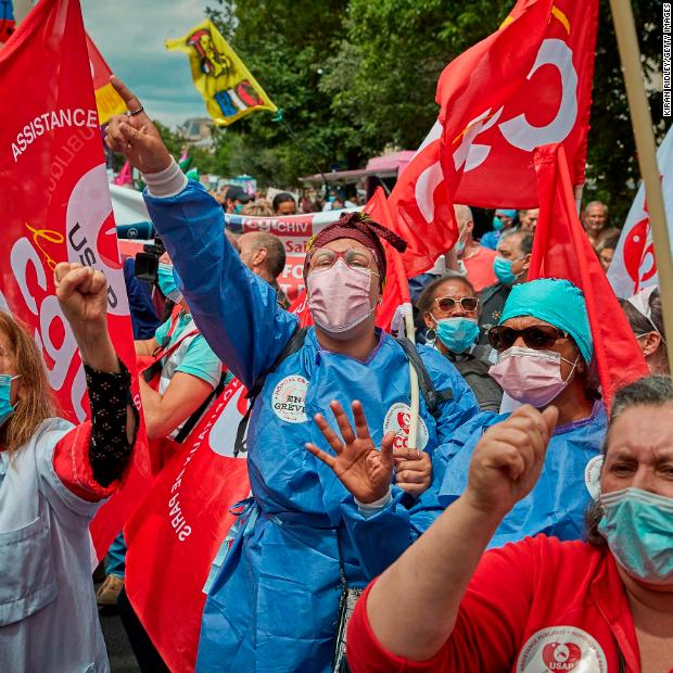 Photos: The novel coronavirus outbreak Health-care workers and union members demonstrate during a Bastille Day protest in Paris on Tuesday, July 14. France is giving health-care workers a raise for their efforts to fight the novel coronavirus.Hide Caption 3 of 337