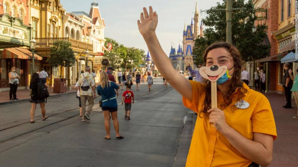 Photos: The novel coronavirus outbreak In this handout photo provided by the Walt Disney World Resort, a worker welcomes guests to the Magic Kingdom Park in Lake Buena Vista, Florida, on July 11. The park’s reopening came the same weekend that Florida reached a record high for single-day case count increase.Hide Caption 12 of 337