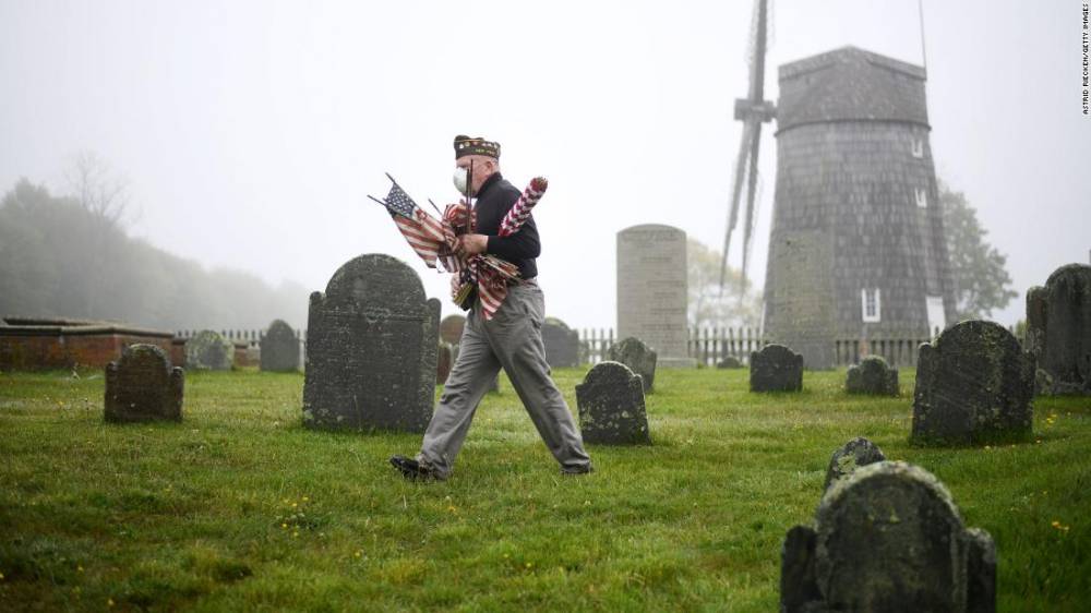 Photos: The novel coronavirus outbreak Brian Carabine, a retired US Marine, replaces flags at the South End Cemetery in East Hampton, New York, just before Memorial Day.Hide Caption 50 of 337