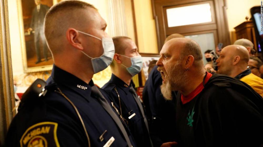 Photos: The novel coronavirus outbreak Michigan state police prevent protesters from entering the chamber of the Michigan House of Representatives on April 30. The protesters were unhappy with the state’s stay-at-home order. Gov. Gretchen Whitmer recently extended the order through May 15, though restrictions were relaxed so some businesses could reopen.Hide Caption 80 of 337