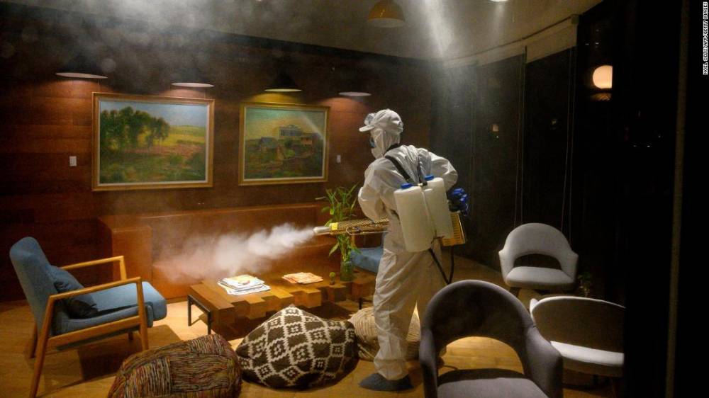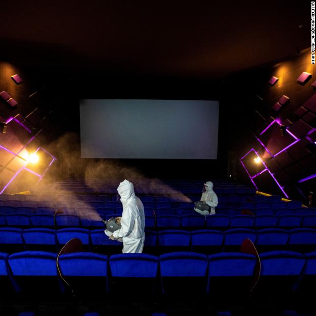 Photos: The novel coronavirus outbreak Workers spray disinfectant inside a movie theater in Bangkok, Thailand, ahead of its reopening on May 31. Hide Caption 41 of 337