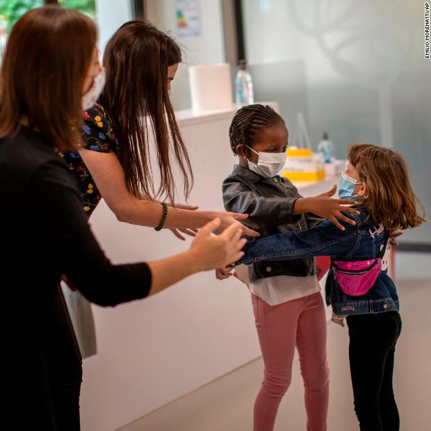 Photos: The novel coronavirus outbreak Teachers in Barcelona, Spain, try to prevent a hug between 6-year-olds Wendy Otin and Oumou Salam Niang as they meet on the first day of school following a lockdown.Hide Caption 37 of 337