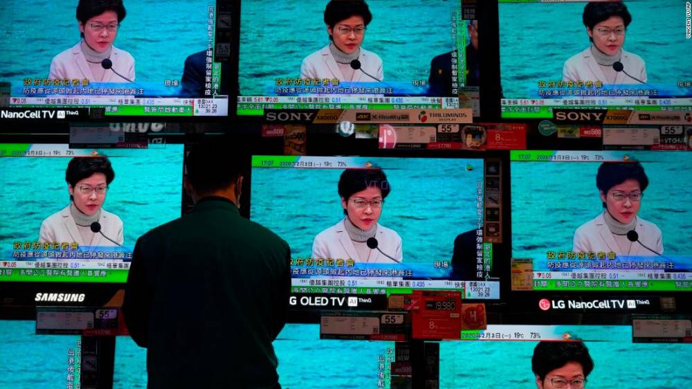 Photos: The novel coronavirus outbreak A man stands in front of TV screens broadcasting a speech by Hong Kong Chief Executive Carrie Lam on February 3. Lam said the city would shut almost all border-control points to the mainland.Hide Caption 304 of 337