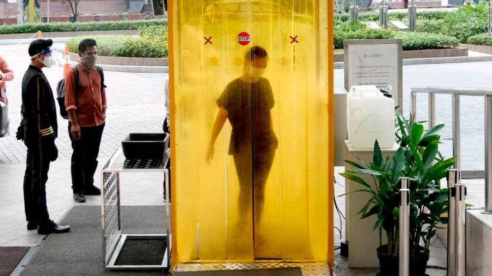Photos: The novel coronavirus outbreak A woman is sprayed with disinfectant before entering a shopping mall in Jakarta, Indonesia, on June 9.Hide Caption 36 of 337
