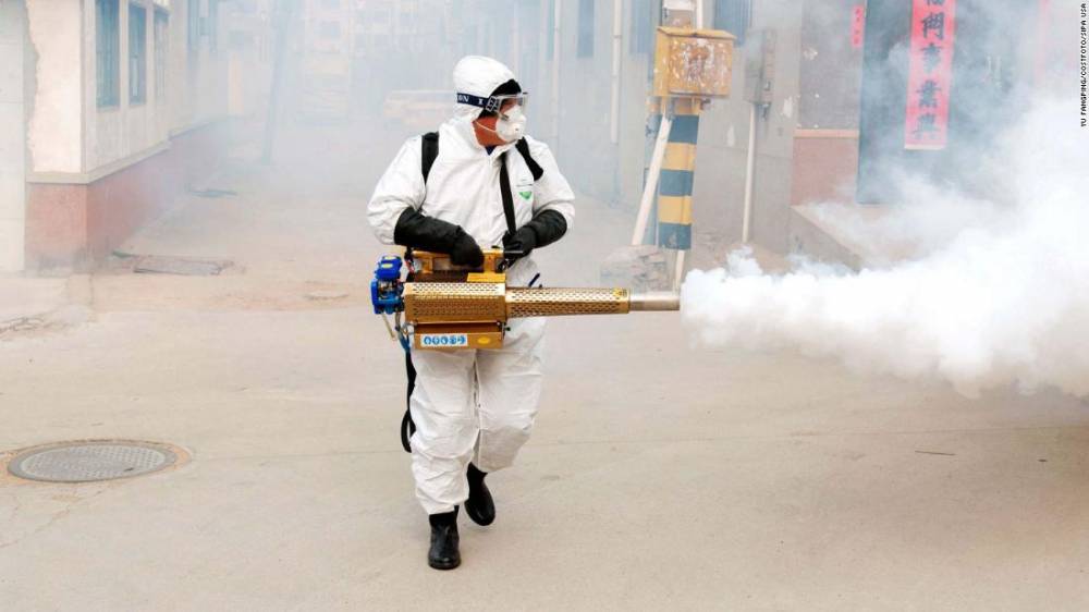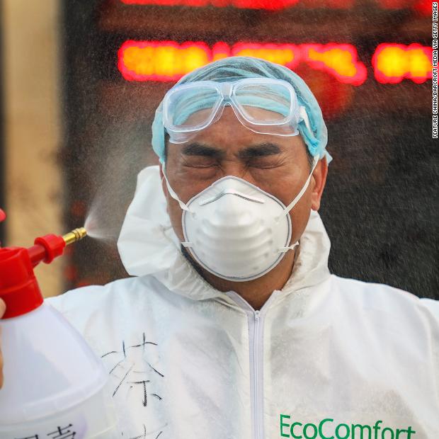 Photos: The novel coronavirus outbreak A volunteer wearing protective clothing disinfects a street in Qingdao, China, on January 29.Hide Caption 310 of 337