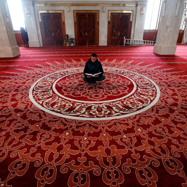 Photos: The novel coronavirus outbreak A muezzin, the person at a mosque who calls Muslims to daily prayers, reads the Quran at a mosque in Gaza City after Ramadan began on April 24.Hide Caption 87 of 337