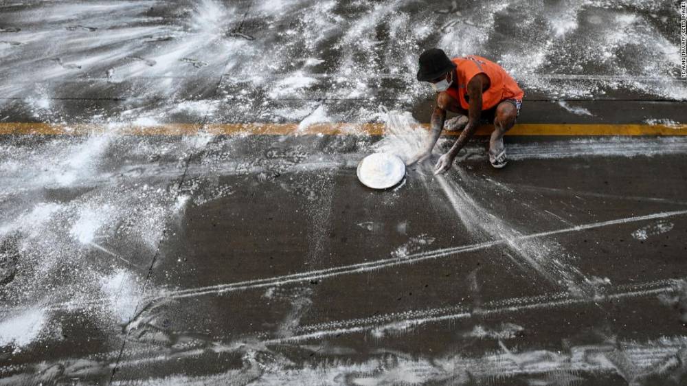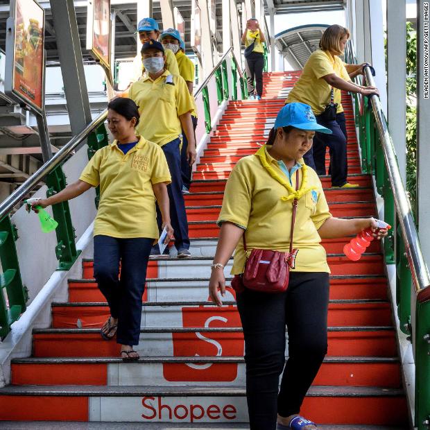 Photos: The novel coronavirus outbreak A team of volunteers disinfects a pedestrian bridge in Bangkok, Thailand.Hide Caption 265 of 337