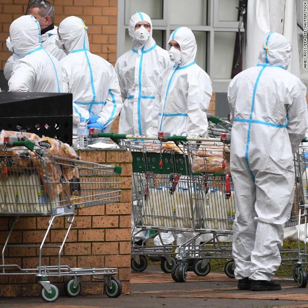 Photos: The novel coronavirus outbreak Firefighters dressed in personal protective equipment prepare to distribute food at a public housing tower in North Melbourne, Australia, on July 7. Metropolitan Melbourne was placed under lockdown amid a resurgence of coronavirus cases.Hide Caption 15 of 337