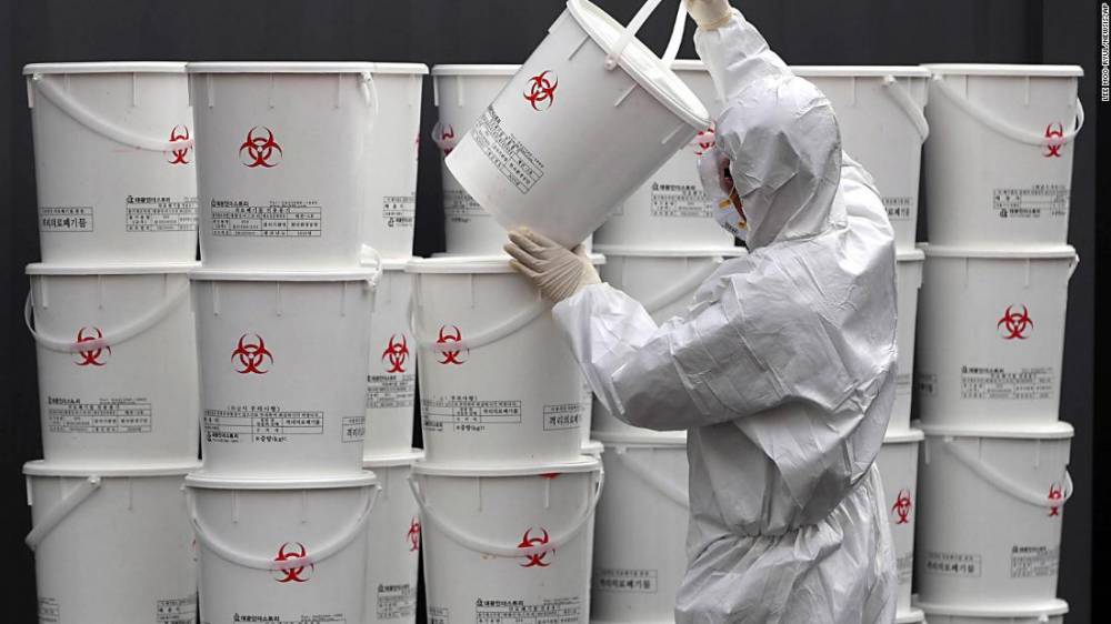 Photos: The novel coronavirus outbreak A worker in Daegu stacks plastic buckets containing medical waste from coronavirus patients on February 24.Hide Caption 262 of 337