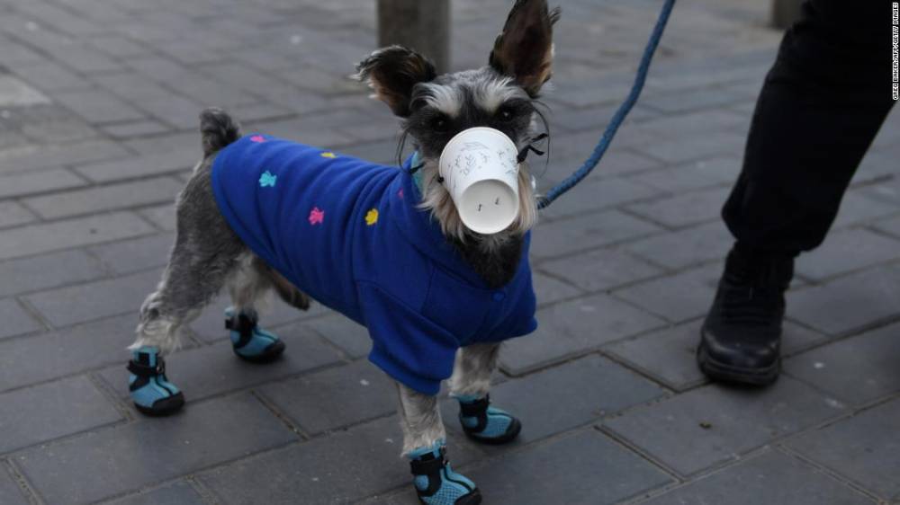 Photos: The novel coronavirus outbreak A dog in Beijing wears a makeshift mask constructed from a paper cup.Hide Caption 298 of 337