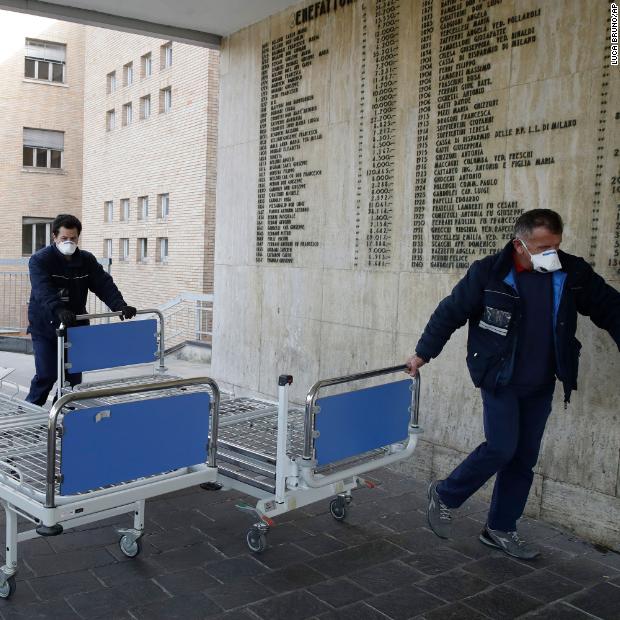Photos: The novel coronavirus outbreak Hospital personnel in Codogno, Italy, carry new beds inside the hospital on February 21. The hospital is hosting some people who have been diagnosed with the novel coronavirus.Hide Caption 267 of 337
