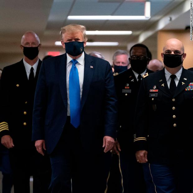 Photos: The novel coronavirus outbreak US President Donald Trump wears a face mask as he visits Walter Reed National Military Medical Center in Bethesda, Maryland, on July 11. This is the first time since the pandemic began that the White House press corps got a glimpse of Trump with a face covering.Hide Caption 11 of 337