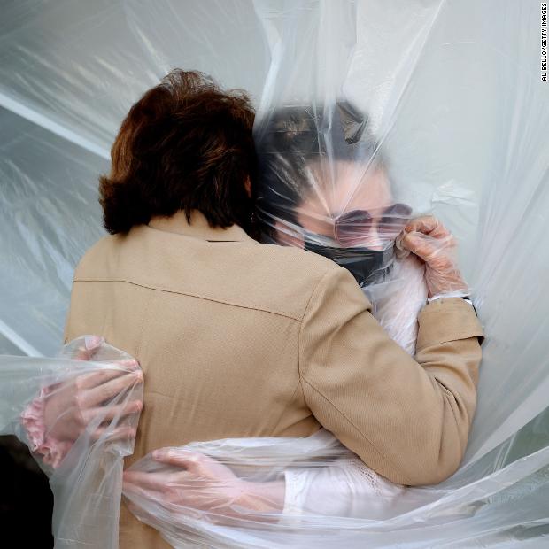 Photos: The novel coronavirus outbreak Olivia Grant, right, hugs her grandmother, Mary Grace Sileo, through a plastic drop cloth that was hung up on a homemade clothesline in Wantagh, New York, on May 24.Hide Caption 49 of 337