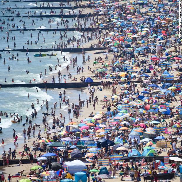 Photos: The novel coronavirus outbreak A beach is slammed with people in Bournemouth, England, during a heat wave on June 25. British Prime Minister Boris Johnson began easing coronavirus restrictions in May, but people are still supposed to be distancing themselves from one another. After thousands flocked to beaches, officials in southern England declared a “major incident.”Hide Caption 25 of 337