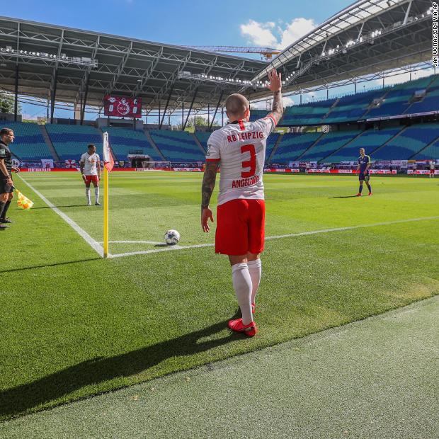 Photos: The novel coronavirus outbreak Angelino, a professional soccer player with the German club RB Leipzig, takes a corner kick during a Bundesliga match against Freiburg on May 16. The stadium was nearly empty, as no more than 322 people are able to attend each Bundesliga match until the end of the season. Hide Caption 61 of 337