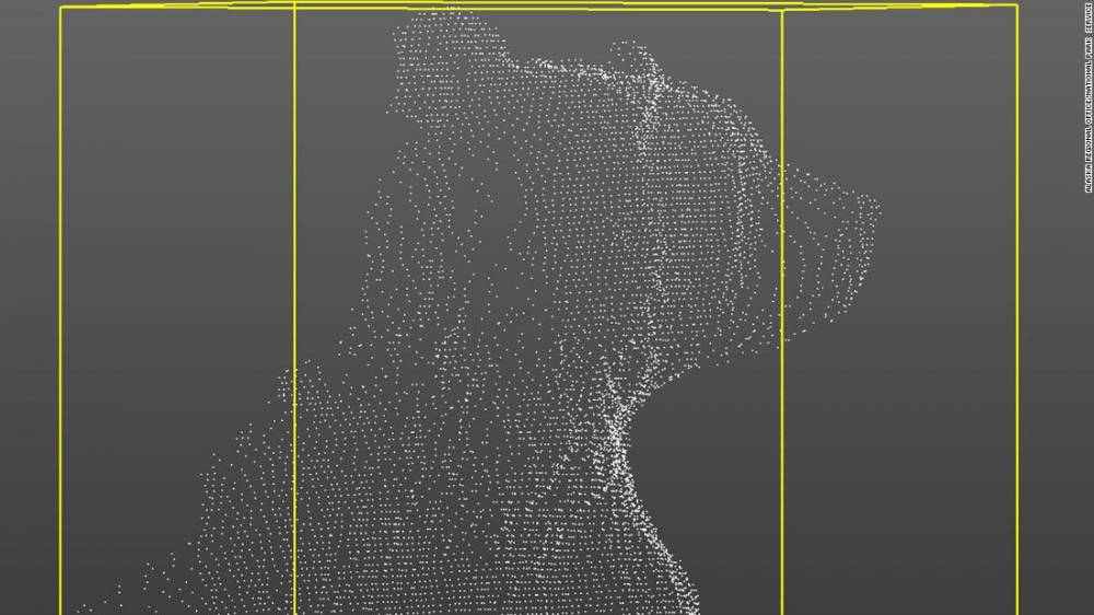 In a matter of seconds, Cusick could see what looked like pinpoints comprising Otis’s rear on a tablet linked to the scanner. Computer software later processed the scan, creating a 3-D model that could be used to determine the width of the bear’s behind.Read MoreCusick was excited; he didn’t think his experiment would work.”I was like, ‘Wow, I got a return — I can measure the butt of Otis here!'” he recalled with a chuckle to CNN Business this week.