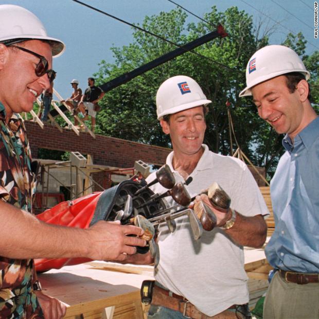 Photos: Amazon founder Jeff Bezos Gregory Nixon, left, delivers a set of antique golf clubs he sold to David Robichaud, center, via Amazon.com Auctions in 1999. Bezos was there for the moment, as Robichaud, a construction worker, was Amazon’s 10-millionth customer.Hide Caption 5 of 30