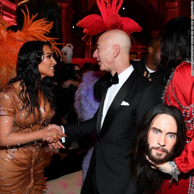 Photos: Amazon founder Jeff Bezos Bezos shakes hands with Kim Kardashian West while attending the Met Gala in New York in 2019. Actor Jared Leto is on the right.Hide Caption 23 of 30