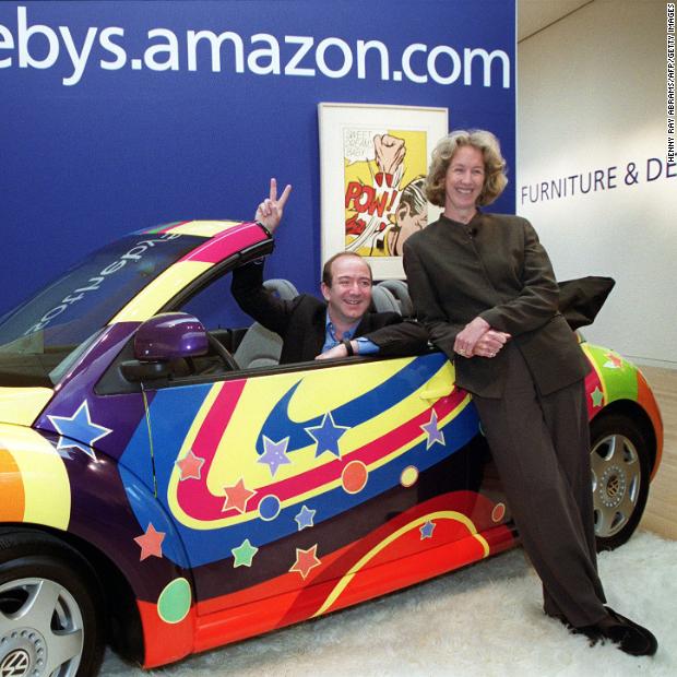 Photos: Amazon founder Jeff Bezos Bezos and Sotheby’s president and CEO Diana Brooks pose in a customized Volkswagen Beetle from the film “Austin Powers: The Spy Who Shagged Me” in 1999. Sotheby’s and Amazon had teamed up to launch sothebys.amazon.com, an online auction site that would offer a broad range of objects, including this car.Hide Caption 3 of 30