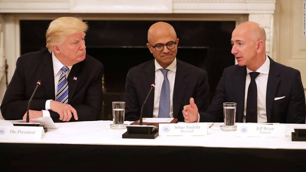 Photos: Amazon founder Jeff Bezos US President Donald Trump and Microsoft CEO Satya Nadella listen to Bezos at a White House meeting of the American Technology Council in 2017. According to the White House, the council’s goal is “to explore how to transform and modernize government information technology.” Hide Caption 21 of 30