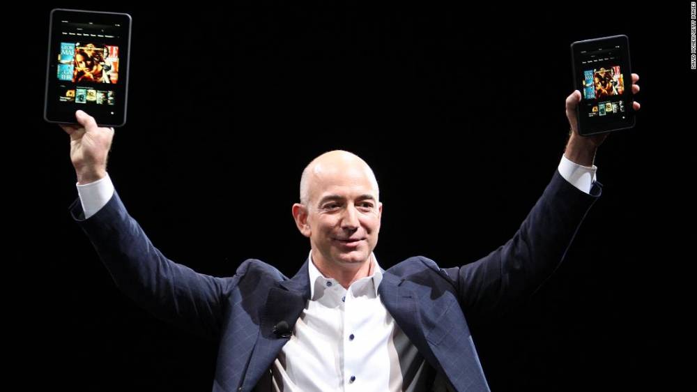 Photos: Amazon founder Jeff Bezos Bezos holds up the new Kindle Fire HD during a news conference in Santa Monica, California, in 2012.Hide Caption 13 of 30