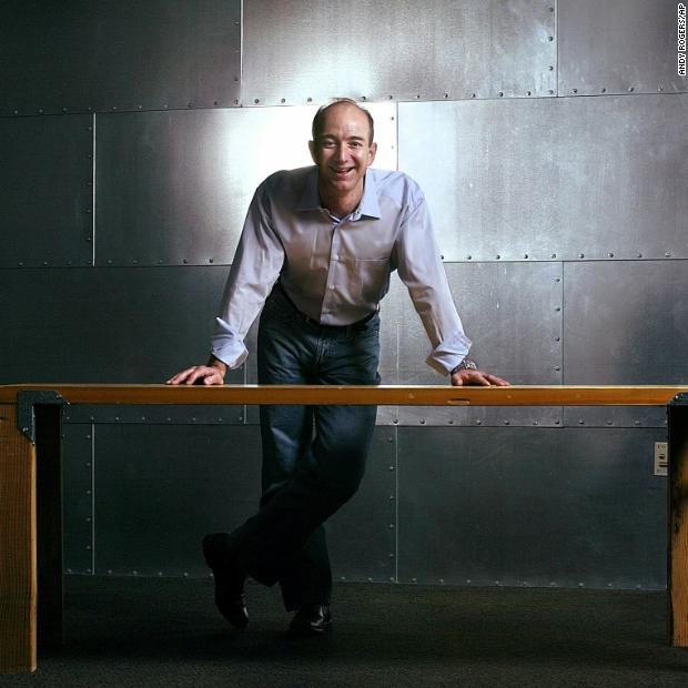 Photos: Amazon founder Jeff Bezos Jeff Bezos stands with one of Amazon’s trademark door-desks at the company’s Seattle headquarters in 2004.Hide Caption 9 of 30