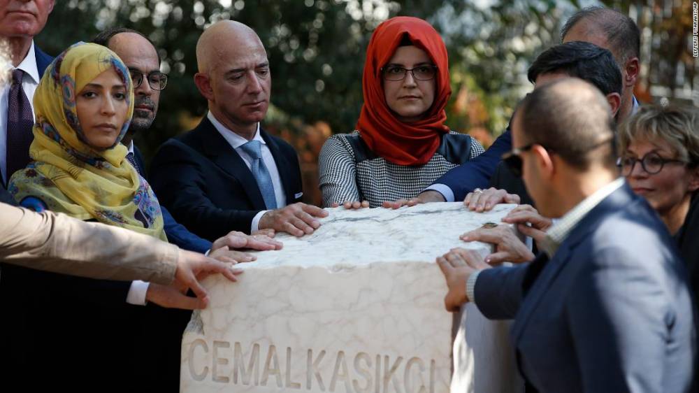 Photos: Amazon founder Jeff Bezos Bezos stands next to Hatice Cengiz, the fiancee of the late journalist Jamal Khashoggi, as a plaque is unveiled near the Saudi consulate in Istanbul in 2019. It was a year after Khashoggi, a Washington Post columnist, was killed.Hide Caption 27 of 30