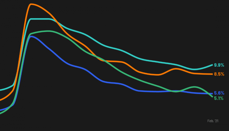 These 5 charts show the pandemic's brutal impact on American workersBut, for now, improvements are still a bit harder to come by.