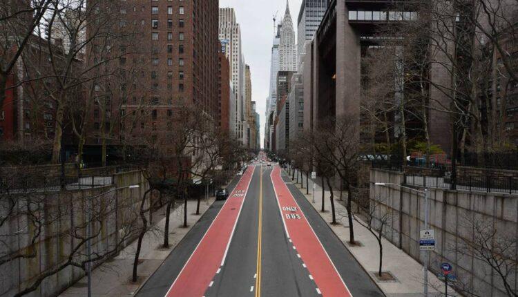 A nearly empty 42nd Street is viewed on March 25, 2020 in New York City.Angela Weiss | AFP | Getty Images